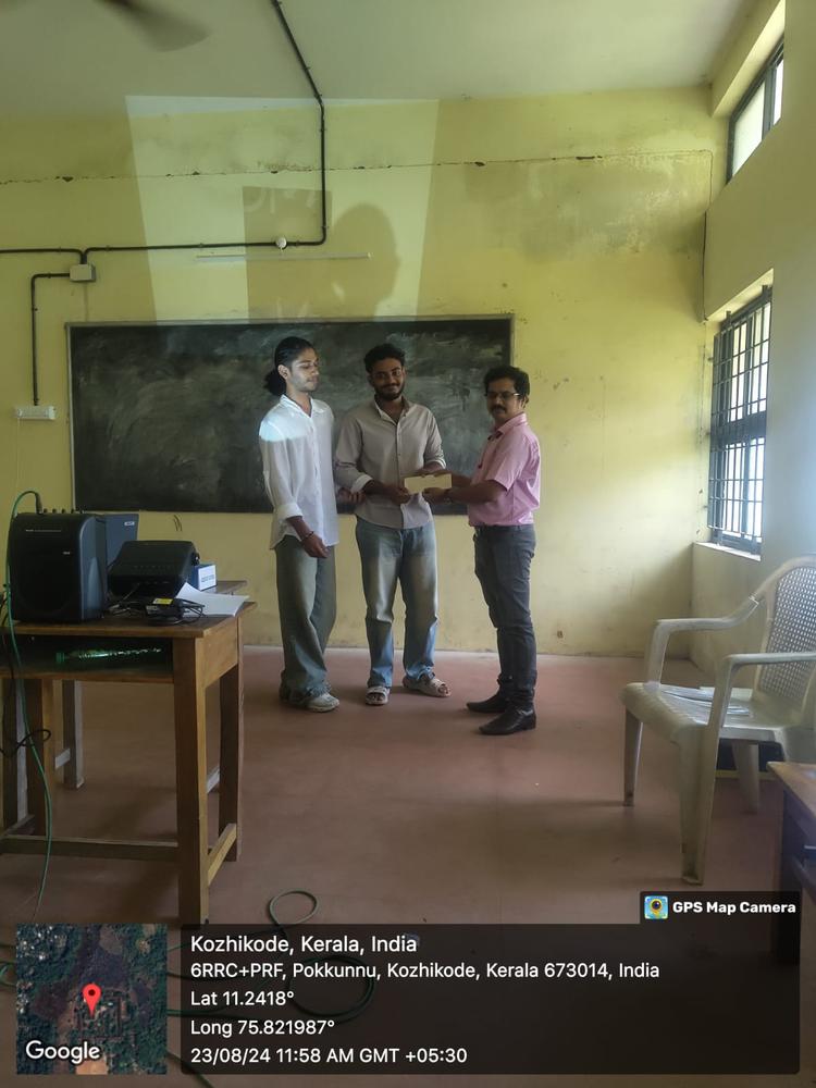 Cash Prizes were distributed to the winners by the Head of the Department Mr. Subeesh TP
