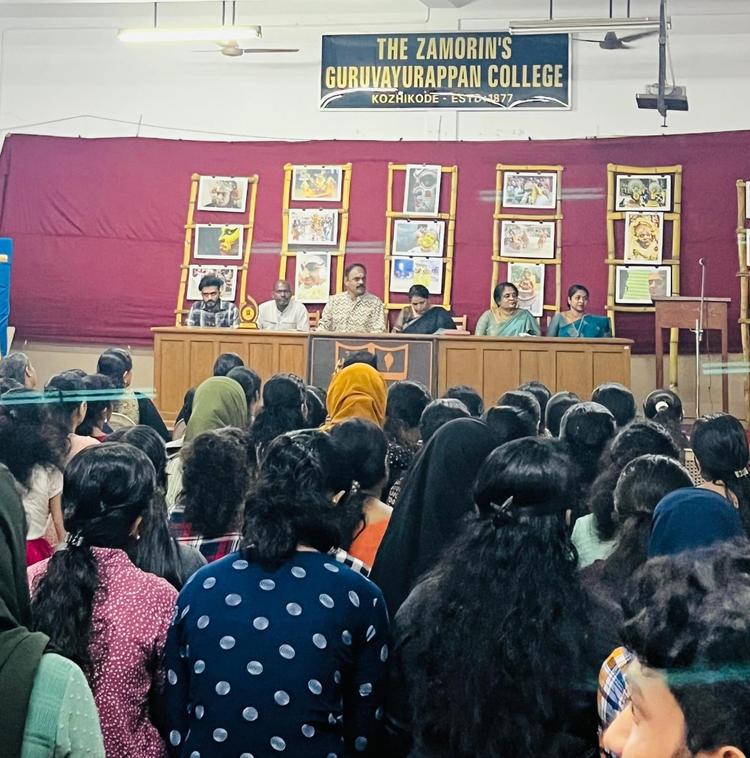 An vivid exhibition of Gothrayanam-Thirayattu, an traditional religious artform was caonducted by the Department of History and Heritage club. Photos of famous photographer Santhosh Leo were displayed and it was an unique experience for faculty and students of the college. The vibrant images depicted the artform that takes its origin in temples of North Kerala