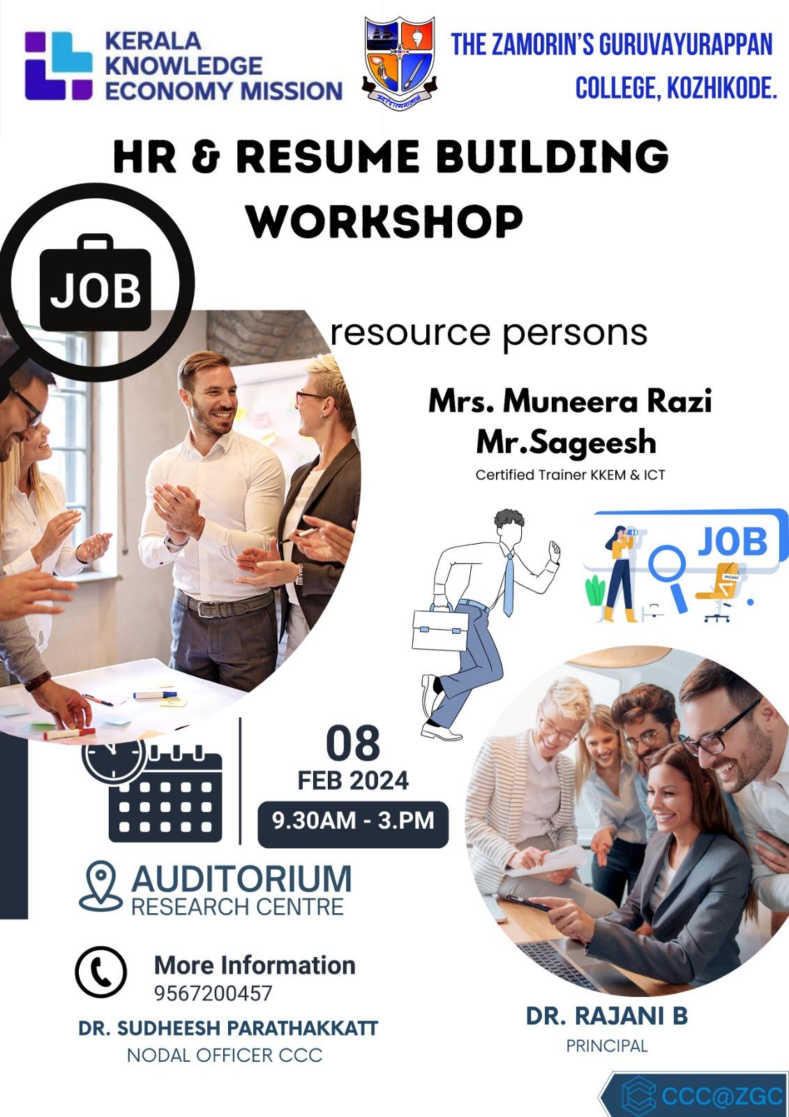HR Resume Building Workshop was conducted in Zamorin's Guruvayurappan College on